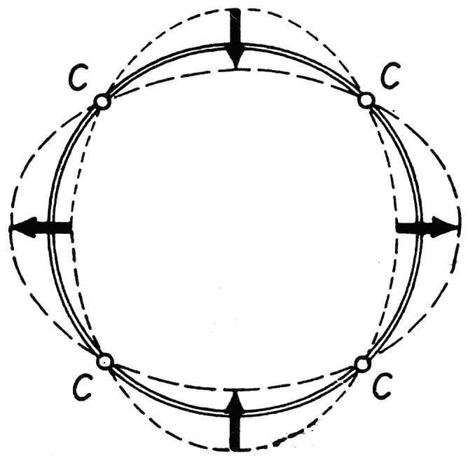 Ha a harang oldalára egy fakalapáccsal ráütünk, akkor az egymásra merőleges vonalak mentén elhelyezett ingák azonos fázisban fognak rezegni, azaz egyszerre fognak kilendülni, vagy nyugalomban maradni. |